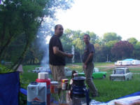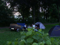 Nachdem Anja & Jan dann zweimal in einen leckeren Hundehaufen reingelatscht sind, haben sie dann erstmal den ihren QEK aufgestellt. In der Zwischenzeit kamen auch Chris & Andrea. Nachdem auch sie ihr Nacht - Quartier aufgestellt hatten, haben wir alle zusammen erstmal lecker fein gegrillert!! Hmm, jamjamjam...